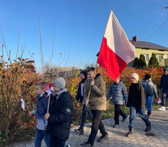 Uczniowie zaprezentowali wiersze i pieśni patriotyczne, które przypomniały zgromadzonym o trudnej drodze Polaków do wolności i niepodległości.
