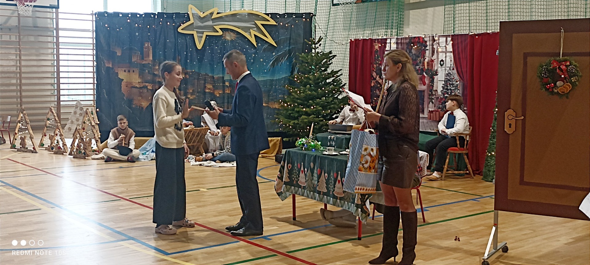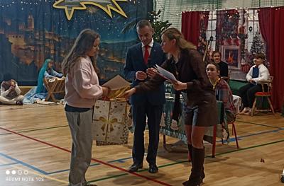 Uroczystość zwieńczyły życzenia Świąteczne oraz podsumowanie konkursów wewnątrzszkolnych wraz z wręczeniem laureatom dyplomów i nagród za:
