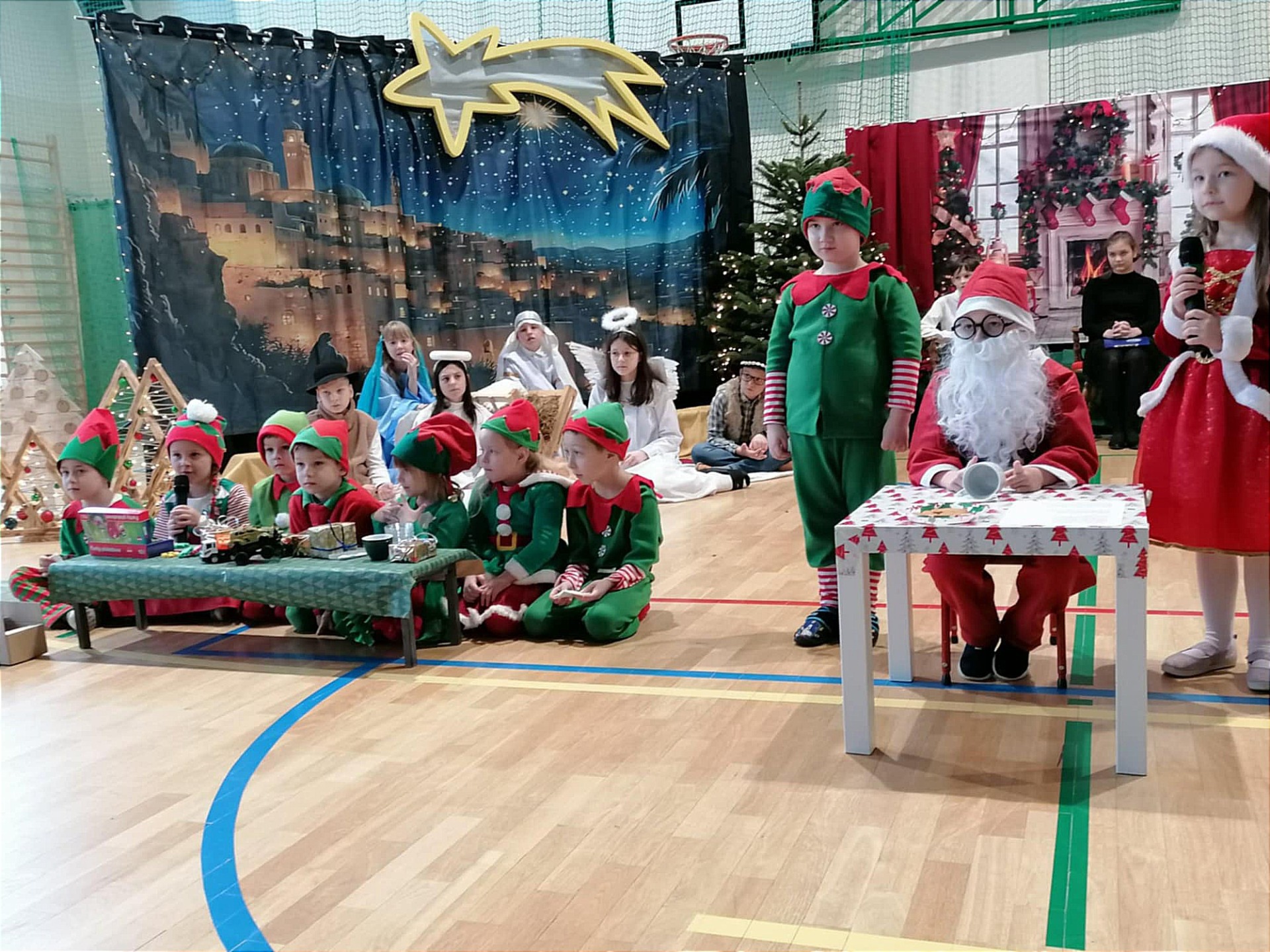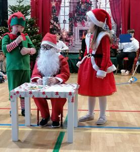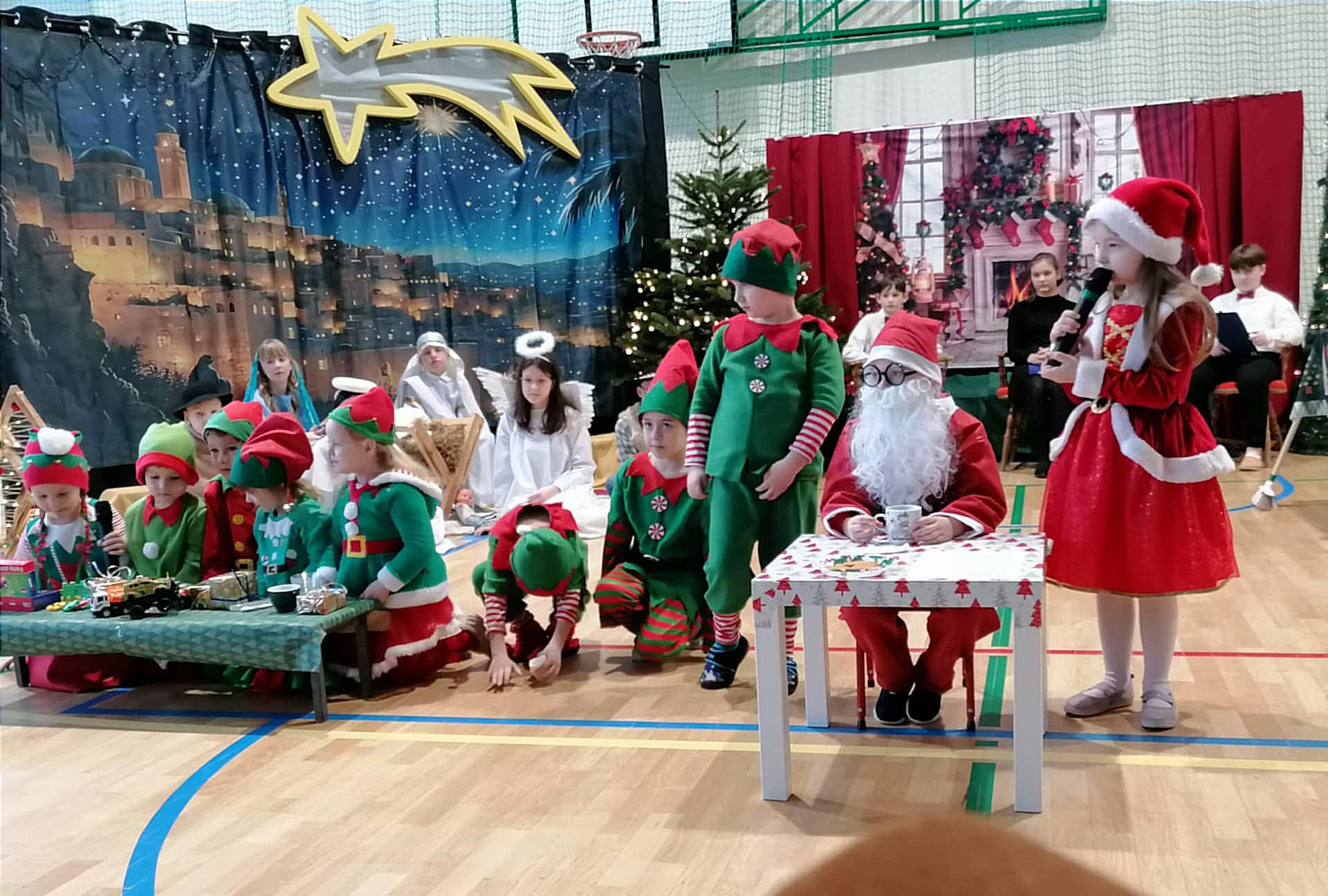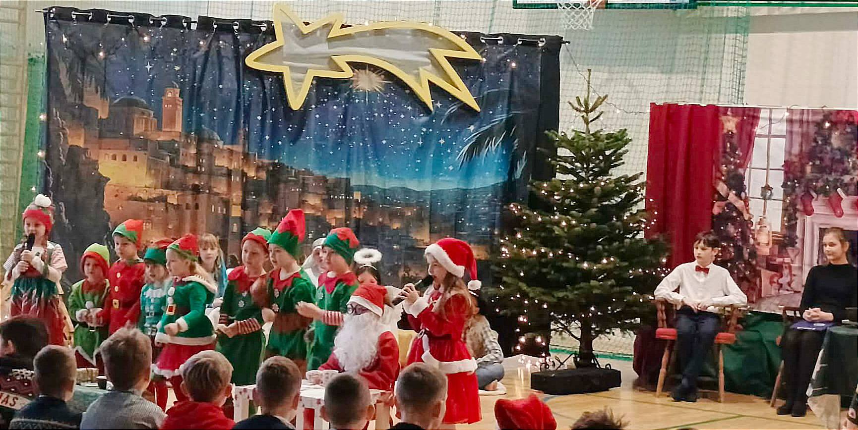 Zaś o przedświątecznych trudach w krainie Świętego Mikołaja pięknie i z przymrużeniem oka opowiedziały małe elfy pod pieczą pani Iwony Spinek.