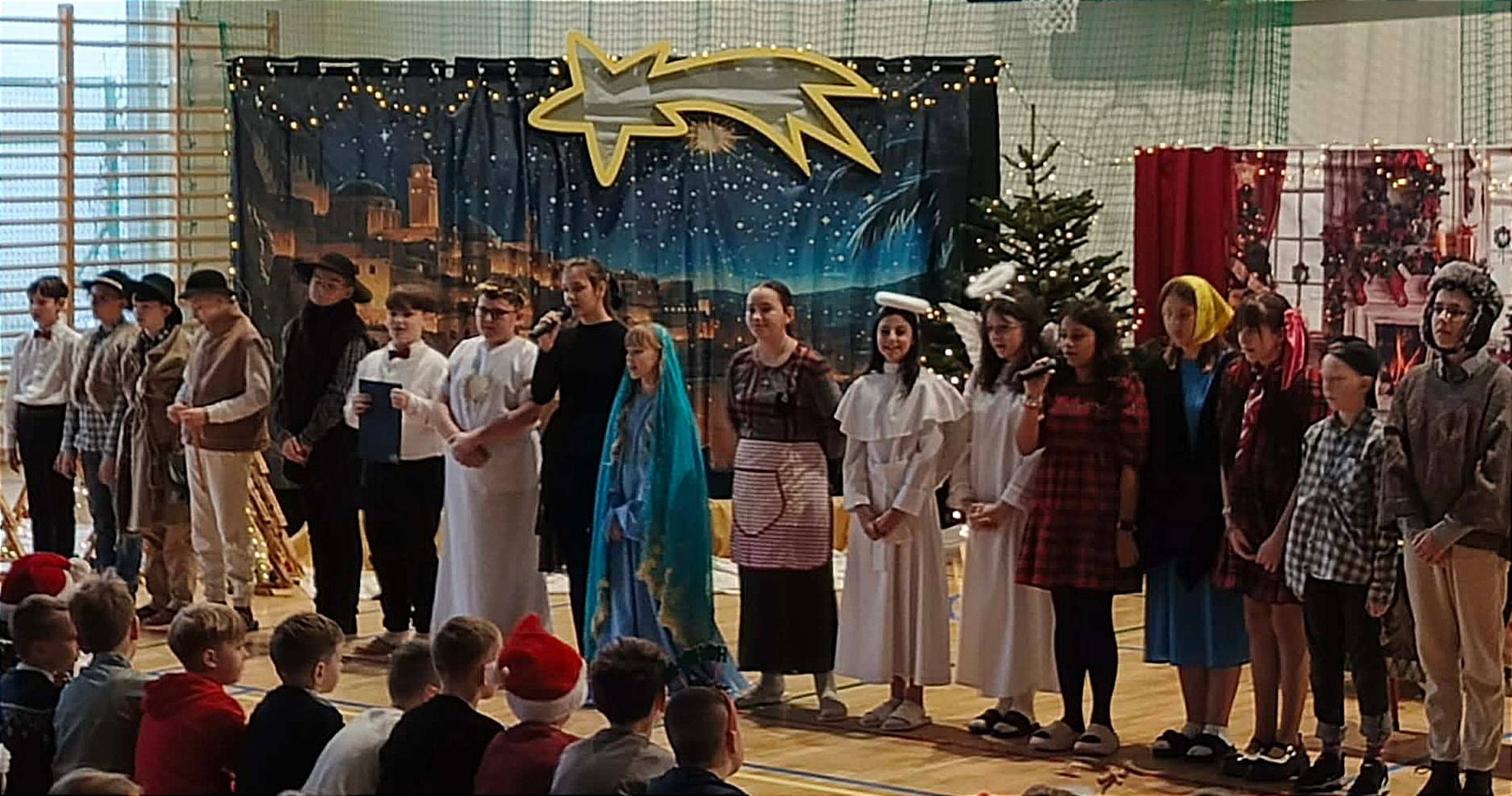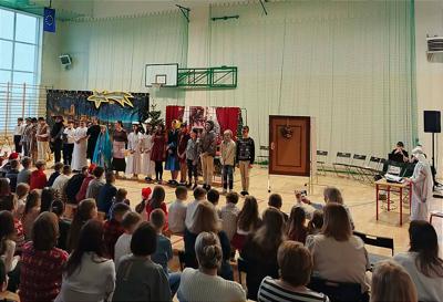 Zgodnie z przedświąteczną tradycją 19 grudnia w naszej szkole miały miejsce Bożonarodzeniowe Jasełka, podczas których młodzież pod okiem pani Joanny Pianko i Agnieszki Stankiewicz, recytując, śpiewając i grając na instrumentach przypomniała o prawdziwej istocie ducha świątecznego niosącego dobroć, współczucie, życzliwość i otwartość na drugiego człowieka