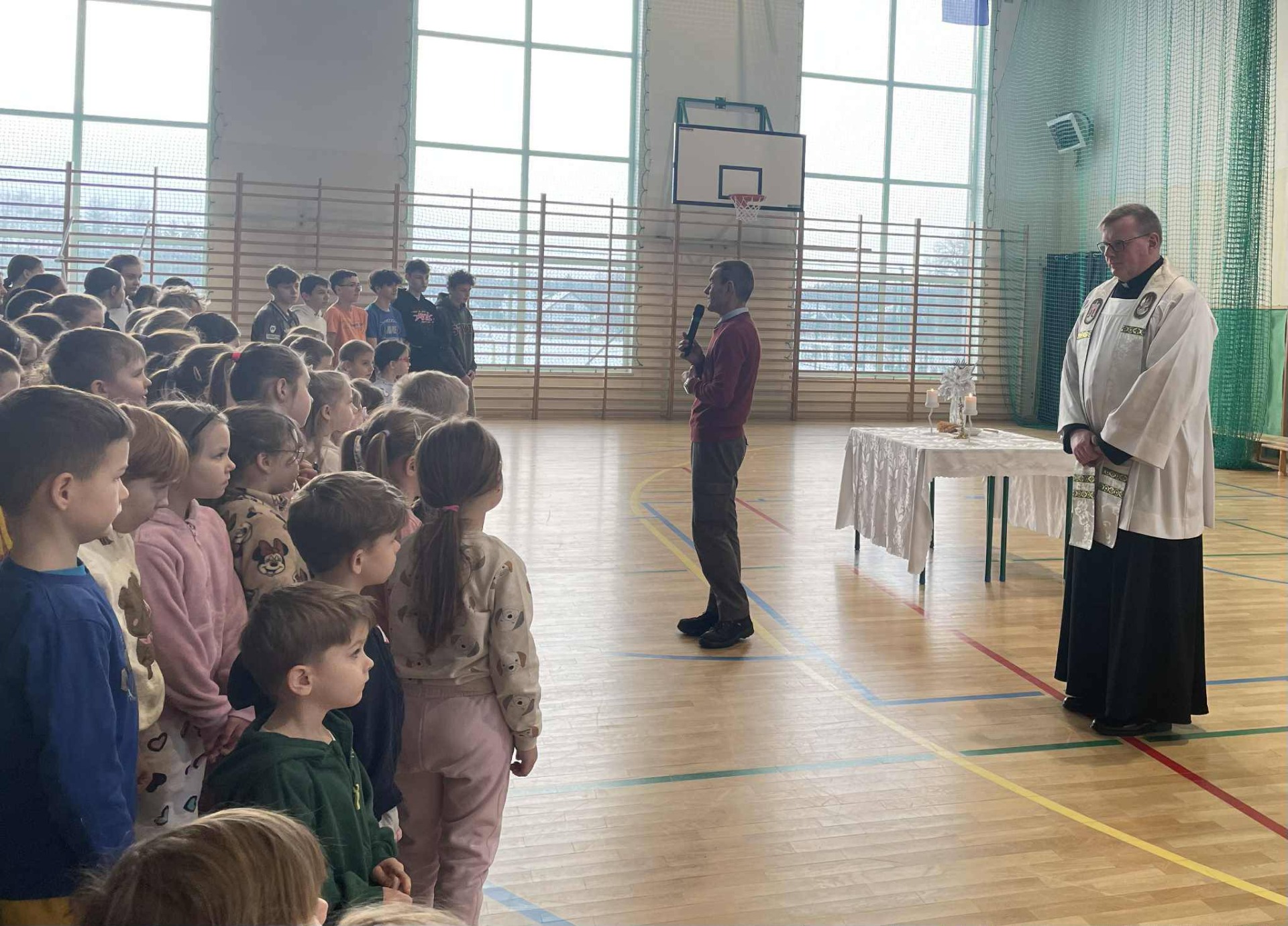 W dniu 9 stycznia proboszcz naszej parafii ppłk Tomasz Szeflinski odwiedził społeczność szkoły w ramach kolędy duszpasterskiej. Spotkanie było okazją do wspólnej modlitwy, rozmowy oraz udzielenia duszpasterskiego błogosławieństwa. Ksiądz proboszcz skierował do uczniów ciepłe słowa, podkreślając znaczenie rodziny jako fundamentu wychowania i przekazywania wartości chrześcijańskich. Wizyta przebiegła w serdecznej i życzliwej atmosferze.